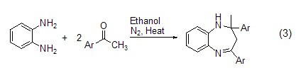 改变反应方法,在微波辐射下邻苯二胺及其衍生物与乙酰基芳香族化合物也可以得到苯并氮杂 化合物 (式4)。