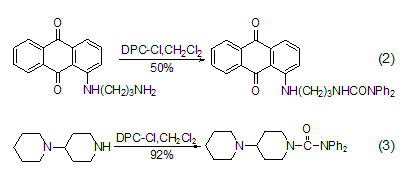 与氨基的反应 dpc-cl易与一级 (式2)[2]、二级脂肪胺 (式3)[3] 等反应[4~7]。
